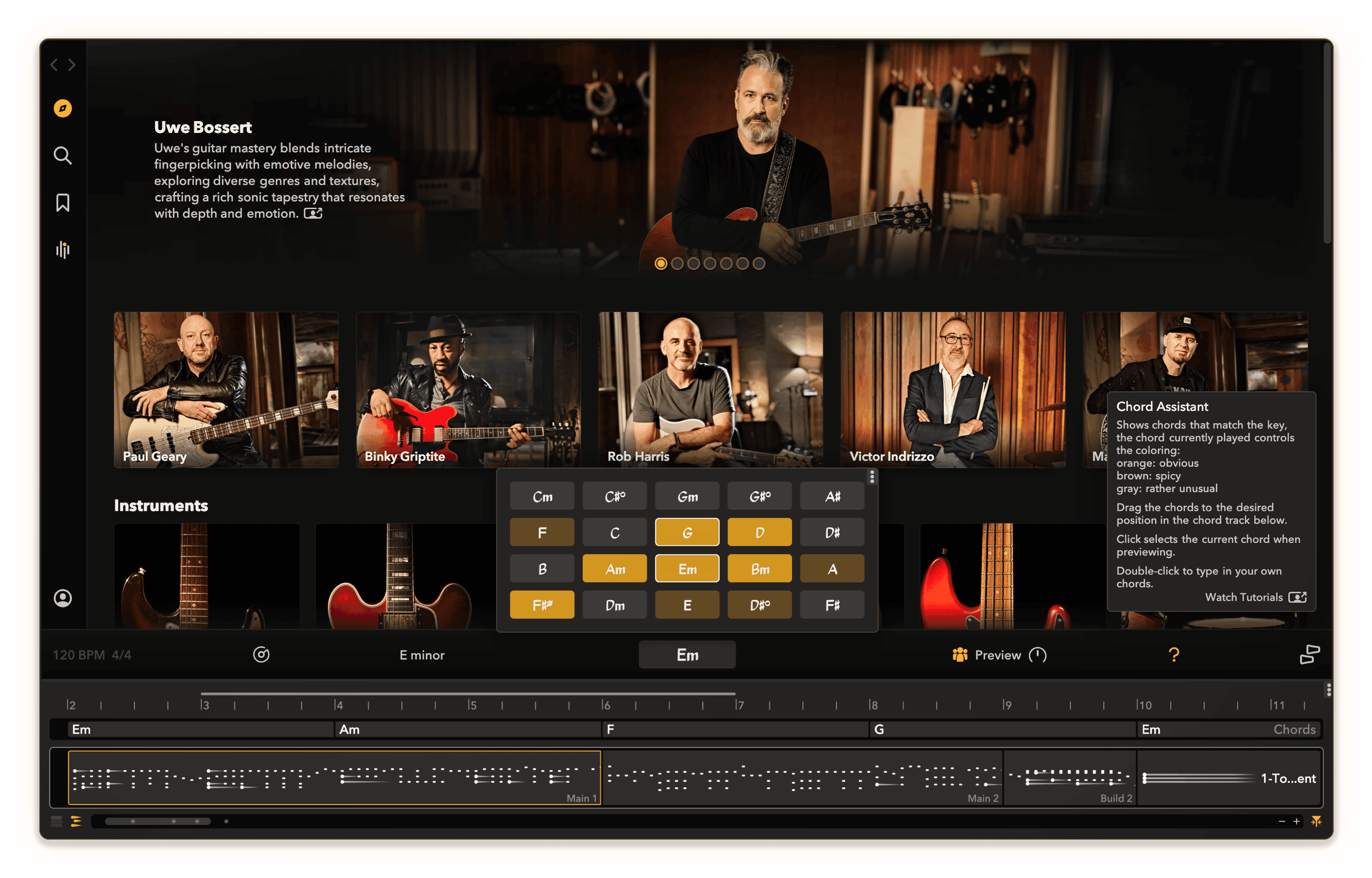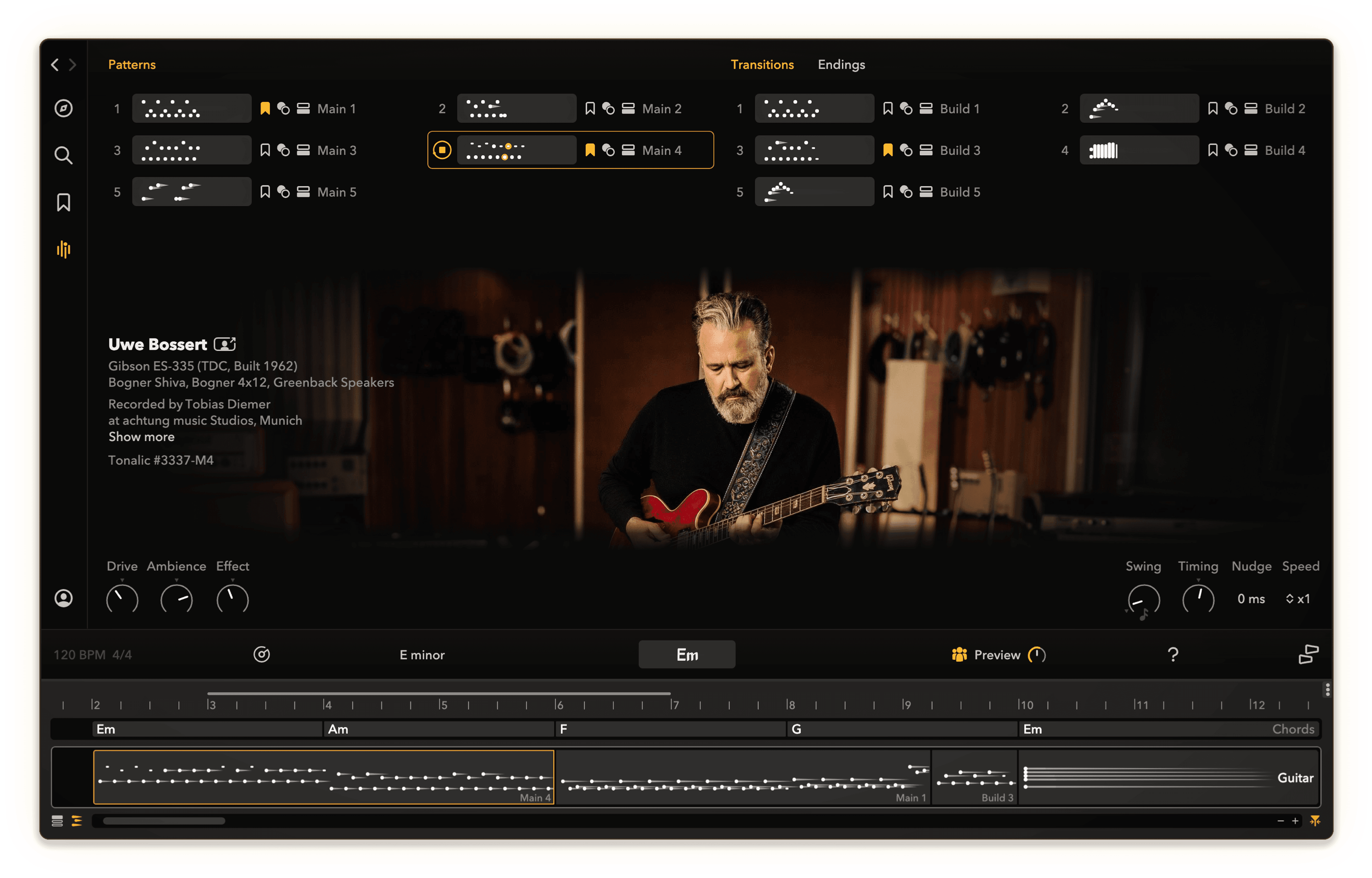 More than 30 world-class studio musicians have lent their signature styles to Tonalic – a groundbreaking new music software from Celemony, the inventors of Melodyne. Create guitar parts that sound like a real player. Whatever the chord or key. Add bass lines and drums that lock naturally to your tempo and musical feel.